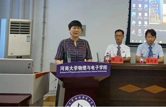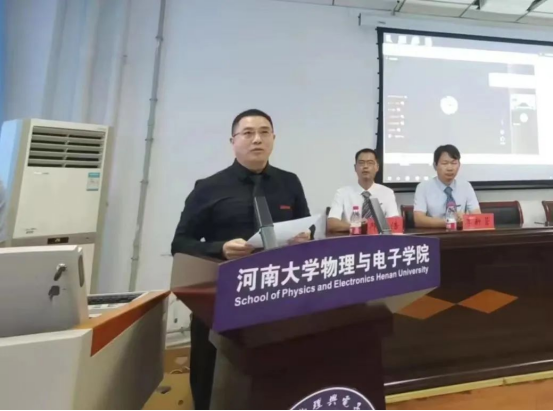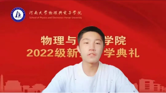 教师代表、河南省特聘教授张锦龙老师在发言时,鼓励新同学要好学力行、勇于创新,做一个胸怀抱负的中国人、精力充沛的干饭人和不断追求卓越的物院人!