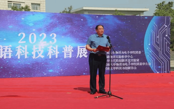 科普事业中的努力和付出,并鼓励学院以科普展为契机进一步推进科普事业发展。学生代表2019级物理学于宏博同学讲到,作为新时代大学生要努力学习专业知识,积极参加科学研究和科普活动,不断提高科学思维和科学探究能力。