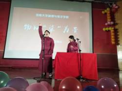 此次活动精彩纷呈,内容丰富多彩,有动听美妙的歌曲、振奋人心的舞蹈、令人发笑却又引人深思的小品,更有意境满满的传统乐器、国际范儿的演唱。晚会期间穿插着微信抽奖、游戏环节,带动了全场观众的热情。微信墙上的“我要上墙”弹幕活动贯穿整个晚会,每个人尽情发表自己的感受。动感十足的开场舞拉开晚会的序幕,空灵悠扬的《贝加尔湖畔》,小品、舞蹈、乐器弹奏等节目紧随其后。小品《老同学》、《自食其果》令人发笑而又意味深长。b-box《一人我饮酒醉》、舞蹈《极乐净土》点燃气氛,嗨翻全场。歌曲串烧《花样嗨》将国粹京剧与英文歌融合,乐器演奏《凉凉》古风盎然。马劼昊学长和靳梦缘学姐带来的相声《众口难调》趣味十足,场下掌声不断。歌曲串烧将中文歌曲与英文歌曲完美融合。最后,晚会在合唱《难忘今宵》的动听歌声中落下帷幕。