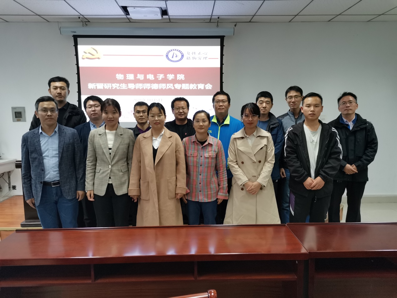 召开了新晋研究生导师师德师风教育专题报告会,学院近三年新晋研究生导师参加会议。会议由物理与电子国家级实验教学示范中心主任李国强主持。