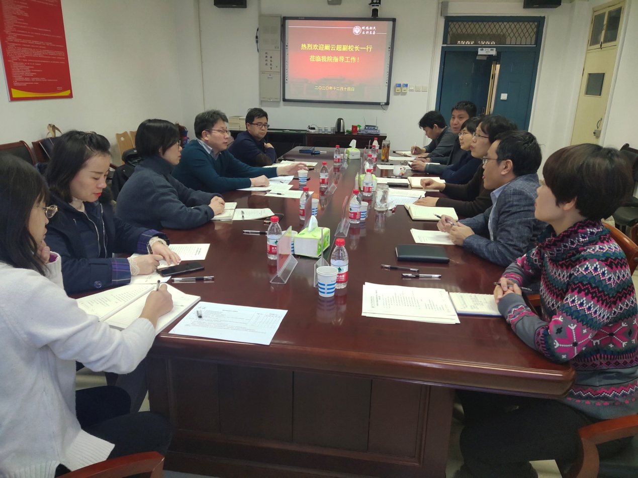 的长期支持表示感谢,汇报了学院从师资、设备、资金和政策等方面对示范中心的支持情况。副书记、副院长白莹简要汇报了学院的基本概况、人才培养、科学研究、国际化、存在的主要问题与解决思路。物理与电子国家级实验教学示范中心主任李国强从基本情况、年度建设、验收指标、发展规划、存在问题和解决方案等几个方面做了汇报。