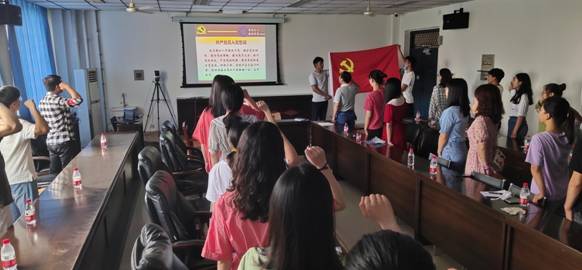 全体参会人员面向党旗宣誓,重温入党誓词。