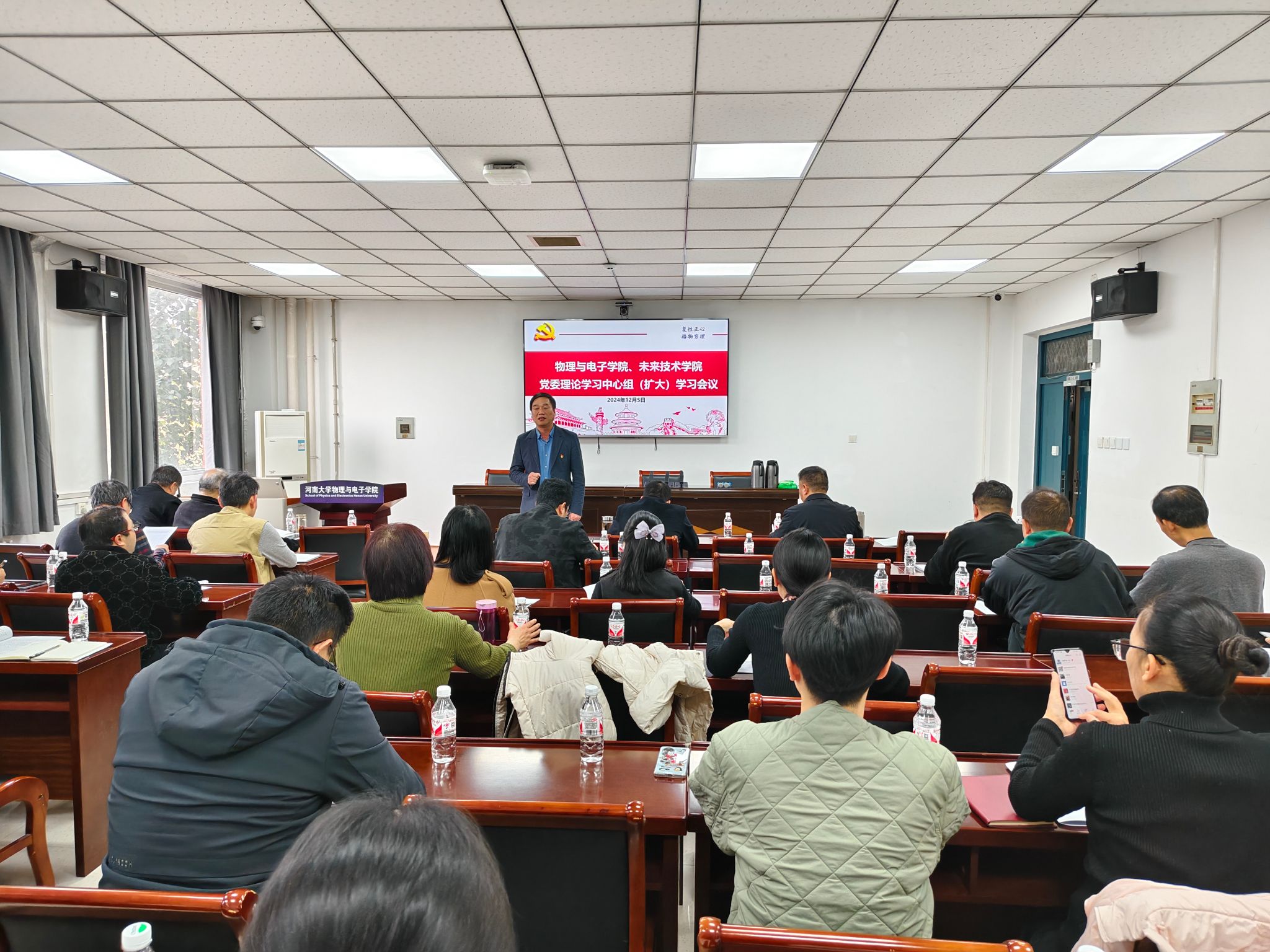 与未来技术学院(量子信息)学院党委委员、领导班子成员、组织员、各党支部书记、教工党支部委员以及系室中心主任和师生代表等参加会议。会议由学院党委书记张慧主持。