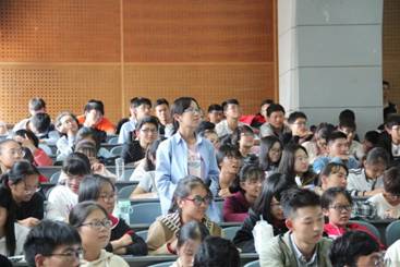 在一阵热烈的掌声中,交流会拉开了序幕。党委副书记乔石豪首先向全体学生强调作为优秀大学生所需的文明礼貌和生活习惯,并向新生们提出塑造“诚信之心”的基本要求。