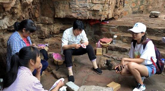 7月15日上午,考察团奔赴此次活动第二站—青年洞。首先,队员们针对红旗渠精神向一些游客进行了随机调查,同学们从每位游客饱含深情的解答中感受到了满满的民族自豪感以及对红旗渠精神“自力更生,艰苦奋斗”强烈的认同感。随后,在纪念红旗渠总设计师、林州老书记杨贵同志处,亲耳聆听了两位曾参与过红旗渠开凿过程的老爷爷热情的向我们讲述开凿红旗渠时的艰辛危险,并将自己为纪念杨贵同志去世而写的诗一字一句读给我们听。他们对红旗渠真挚的感情让我们感受到了红旗渠精神散发的光辉。观察团成员在青年洞前面对党旗重温了入党誓词。