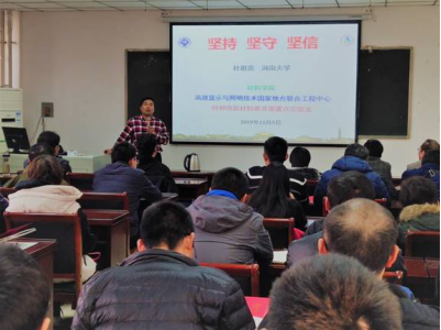 邀请材料学院院长、高效显示与照明技术国家地方联合工程中心主任、特种功能材料教育部重点实验室常务副主任杜祖亮教授做报告。学院领导班子、全体教师党员和博士聆听了报告。