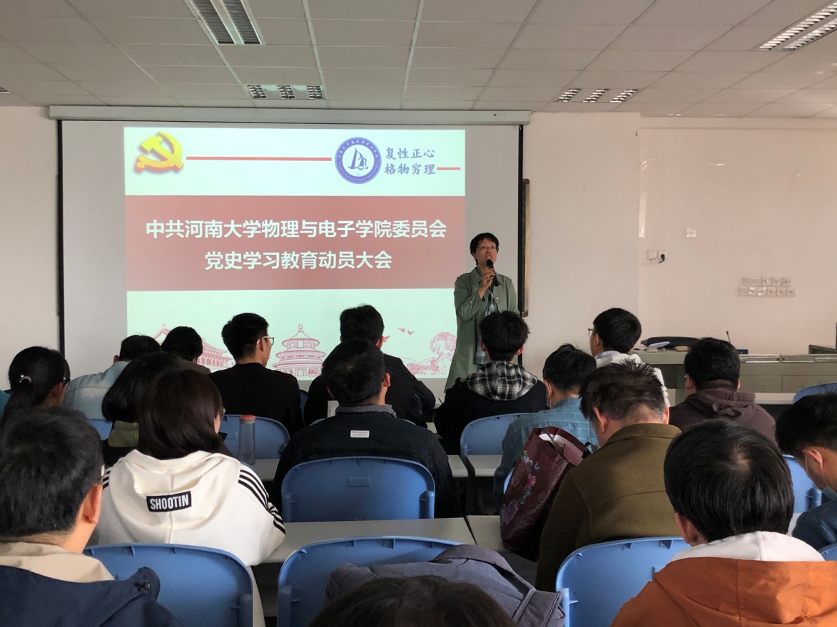 王宏华传达了学校党史学习教育动员大会精神,宣布学院党史学习教育领导小组人员名单,安排部署学院党史学习教育的具体工作。她指出,我们要深刻领会党史学习教育的重大意义,要通过内容丰富、形式多样的党史学习,做到学史明理、学史增信、学史崇德、学史力行,不断提高政治判断力、政治领悟力、政治执行力,实现“六个进一步”目标。她要求,一要提高政治站位,落实到位,高标准高质量完成学习教育各项任务;二要全程督导检查,实时掌握学习教育情况,及时总结好经验好成果;三要做好宣传报道,严格意识形态工作责任制,依托学院网站、微信公众号、电子显示屏、宣传栏等,做好相关宣传;四要强化统筹推进,着力解决实际问题,学党史、悟思想、办实事、开新局。