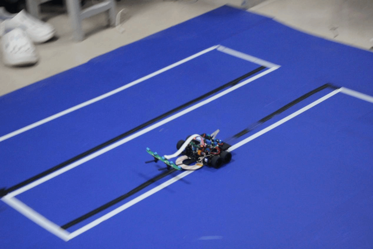 室外赛场上,竞赛氛围更为热烈。极速越野组直面沙地、坡道等复杂地形挑战,新增的语音指令避障人机交互任务,进一步考验智能车的环境适应能力;气垫越野组在操场赛道完成往返赛道竞速、八字型赛道竞速及特殊路况测速等科目,在复杂地形中展开激烈角逐。完全模型组采用I型车模,借助先进的视觉识别技术,快速感知赛道元素,精准完成多目标识别与自主决策导航,其创新设计与出色性能令人瞩目。