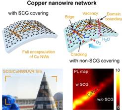 开发低成本、高稳定性的柔性透明电极对智能可穿戴设备、人机交互系统等新兴技术的发展具有重要的现实意义。铜纳米线具备几乎与银相当的导电性却有着更高的成本效益,在柔性电子产品、大尺寸触摸屏显示器和摩擦电能量采集器等领域具有广阔的应用前景。然而,铜极易氧化的问题导致其电导率显著降低,严重影响了铜纳米线在透明电极领域的实际应用。如何防止铜纳米线网格氧化又不牺牲其透光度,成为亟待解决的核心关键问题。
