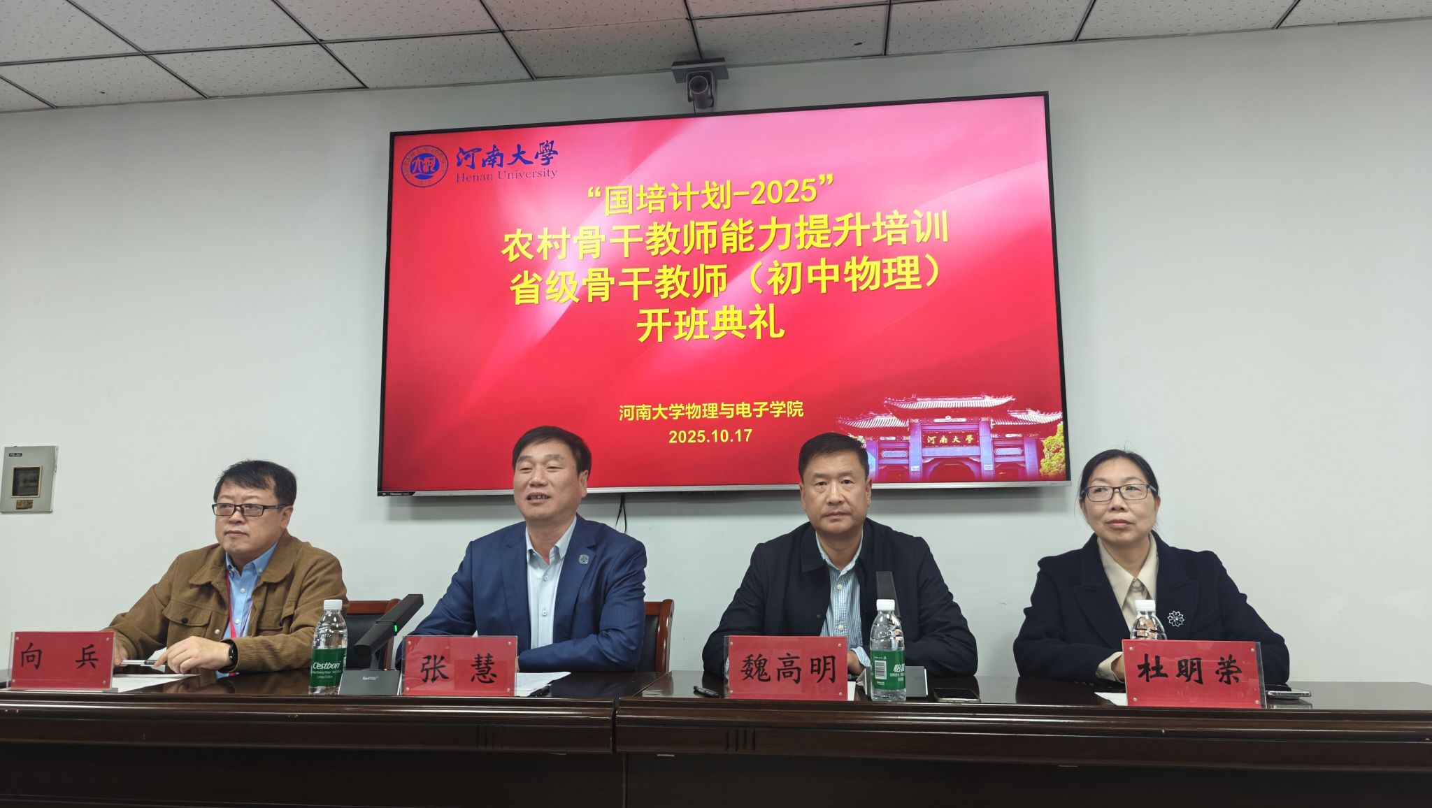 10月17日,尽管天降大雨,“国培计划-2025”省级骨干教师培训开班典礼仍在学院A 313会议室如期举行。学院党委书记张慧、副院长魏高明、教师代表杜明荣教授等及全体参训省级骨干教师齐聚一堂,共同开启本次培训征程,典礼由魏高明主持。