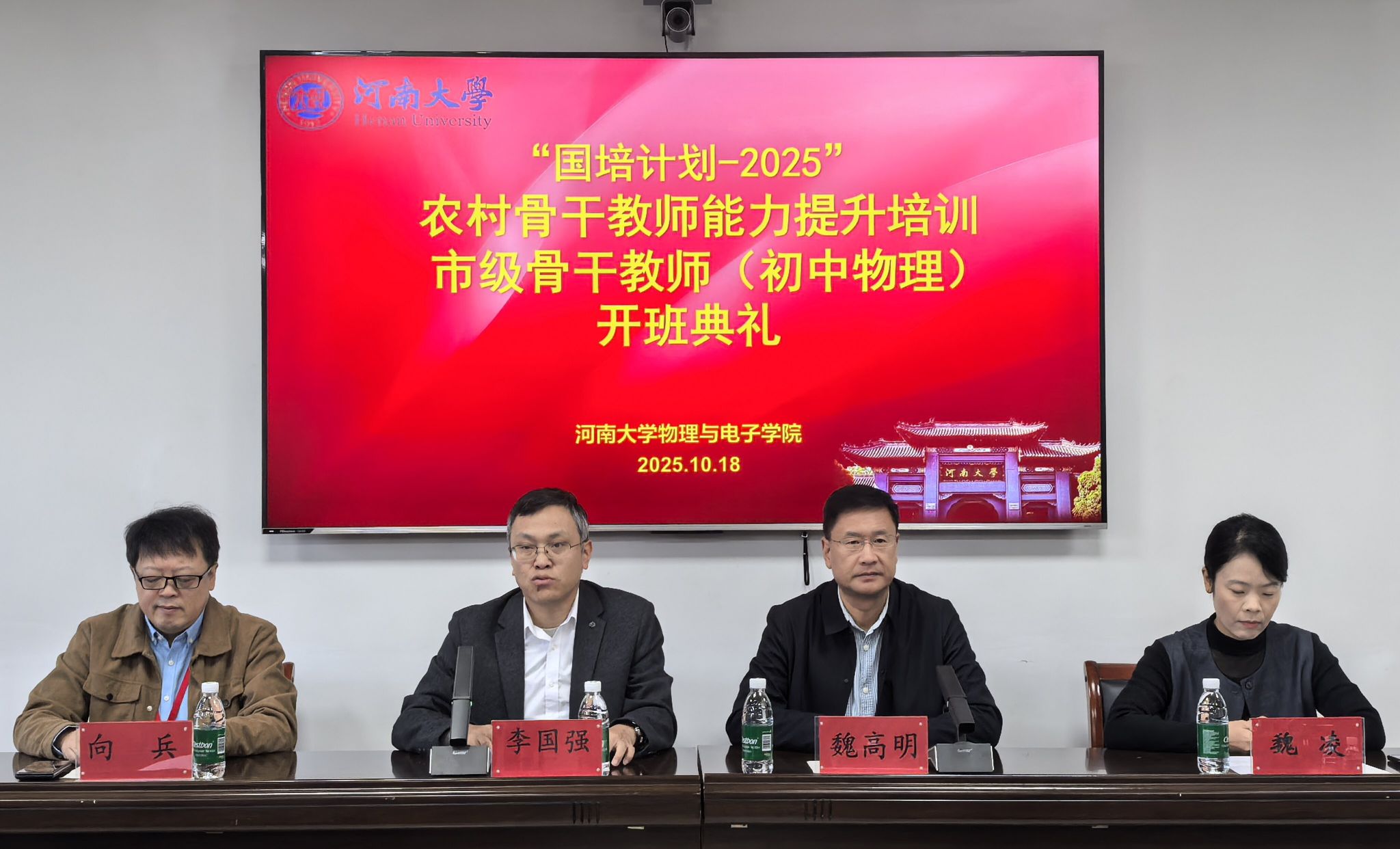“国培计划 - 2025” 市级骨干教师培训开班典礼在 313 会议室举行。来自全省各地的 50 余名物理学科骨干教师齐聚一堂,学院副院长魏高明主持典礼。
