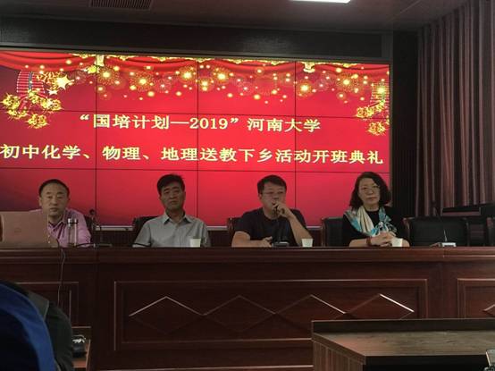 向兵老师、化学化工学院蔡永红老师、环境与规划学院张东山老师组成。来自河南省确山县50名初中骨干教师参加,向兵老师发表了重要讲话。
