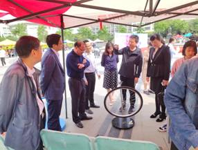 开幕式结束后,领导老师和同学们一起参观科技文明展,边游览边听讲解,不时参与活动之中,亲身感受物理的魅力,在寓教于乐的过程中,探究了物理现象,学习了科学知识。本次科技文明展由学院宣传、趣味物理实验、mini科技馆、科普展、物理现象随手拍、mini题王争霸赛、题王争霸赛、科技成品展、互动游戏区、研之成理及党的十九大精神宣传等十一个部分组成,党的十九大精神宣传模块重点宣传了科技创新在引领经济社会高质量发展中的重要作用。
