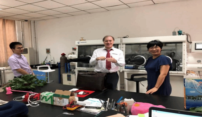 爱因斯坦世界科学奖得主、能源界最高奖—埃尼奖得主、中国科学院外籍院士 王中林(左)到校指导工作 |