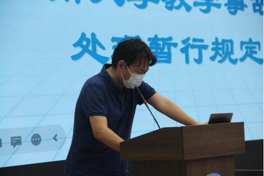 教学事故认定及处理暂行规定》,从试卷命题、评阅、保管、达成度分析(试卷分析)、监考规范等方面进行了考前讲解及动员。他指出本次考试是近三年来的第一次大规模线下考试,各位老师高度重视,切实做到“科学命题、严肃考纪、合理分析、持续改进”,组织、落实好本次考试的相关任务。