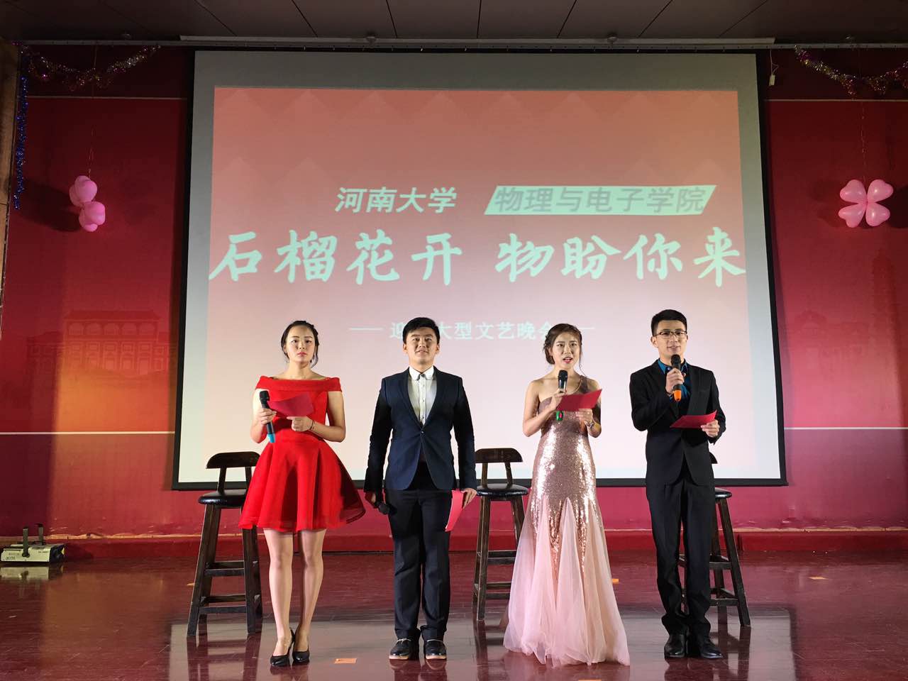 金明校区隆重举行,院党委书记王宏华、院长顾玉宗、院党委副书记乔石豪、副院长夏晓智、赵高峰、党办主任刘寒冰、行政办主任郭浩、各系室教师、各年级辅导员以及2016级400余名新生一同观看了迎新晚会。