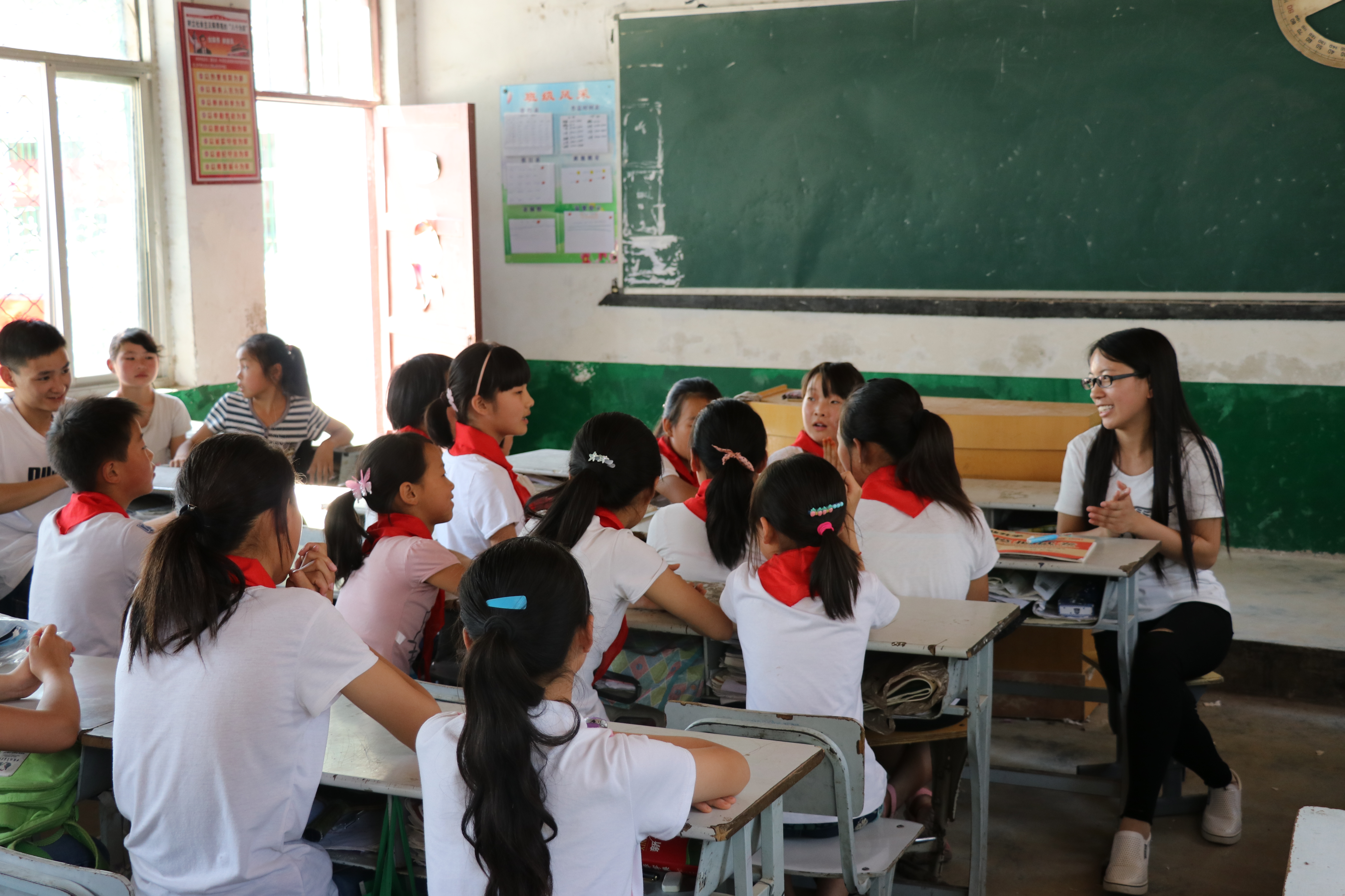 仪式结束后,教师代表杜明荣博士为老君营村小学教师作了教学技能、教学理念方面的培训;4名毕业生党员代表和老君营小学的学生进行了座谈交流。