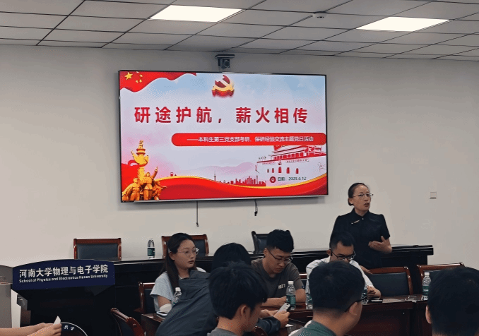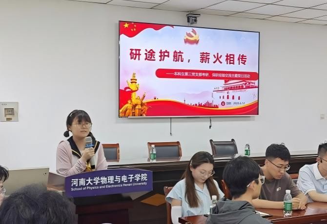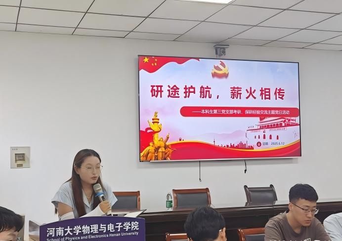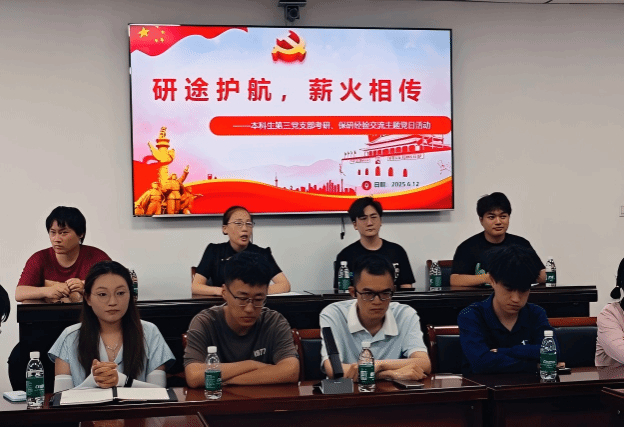 本科生第三党支部在A313教室开展“沿途护航,薪火相传”考研保研经验交流主题党日活动。活动由党支部书记张婷主持,支部全体党员参加活动。