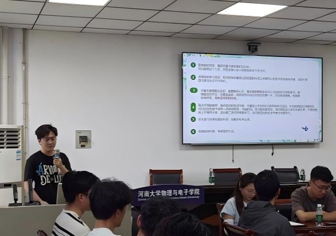 活动伊始,张婷表示此次主题党日旨在以党建赋能学业发展,切实解决学生在考研保研过程中的实际困惑。随后,莫哲、姬朋蕾、李培元等7位优秀党员依次登台,结合自身经历分享经验、解答困惑。徐可同学聚焦保研资格认定、科研竞赛筹备等内容,系统梳理保研流程与关键细节;姬朋蕾同学分享了考研全周期复习计划,强调“坚持”与“方法”的重要性;李培元同学以“精准择校”为核心,结合数据为同学们提供科学的院校选择策略;李铭真分享跨学科备考经验,传授突破学科壁垒的学习方法;刘一凡、徐佳节同学则分别从保研复试技巧、心态调整等角度,为同学们送上贴心建议。