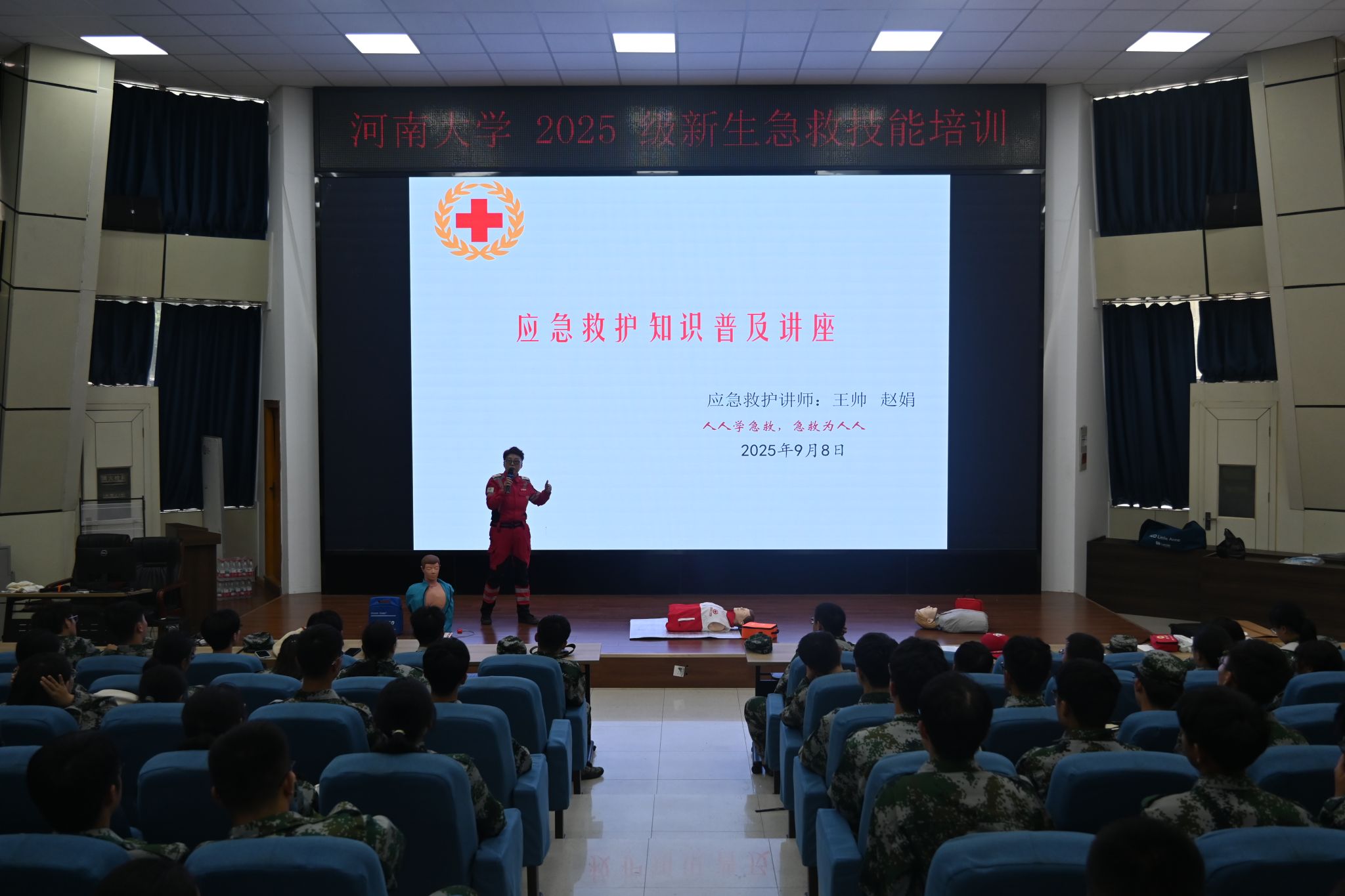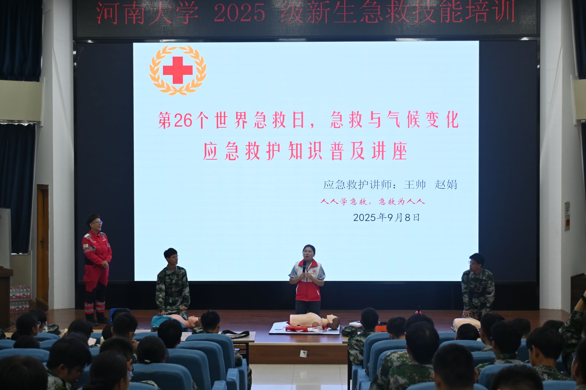 特邀急救专家王帅、赵娟,为新生群体开展应急救护知识普及专题讲座,以专业指导筑牢校园生命安全防线。