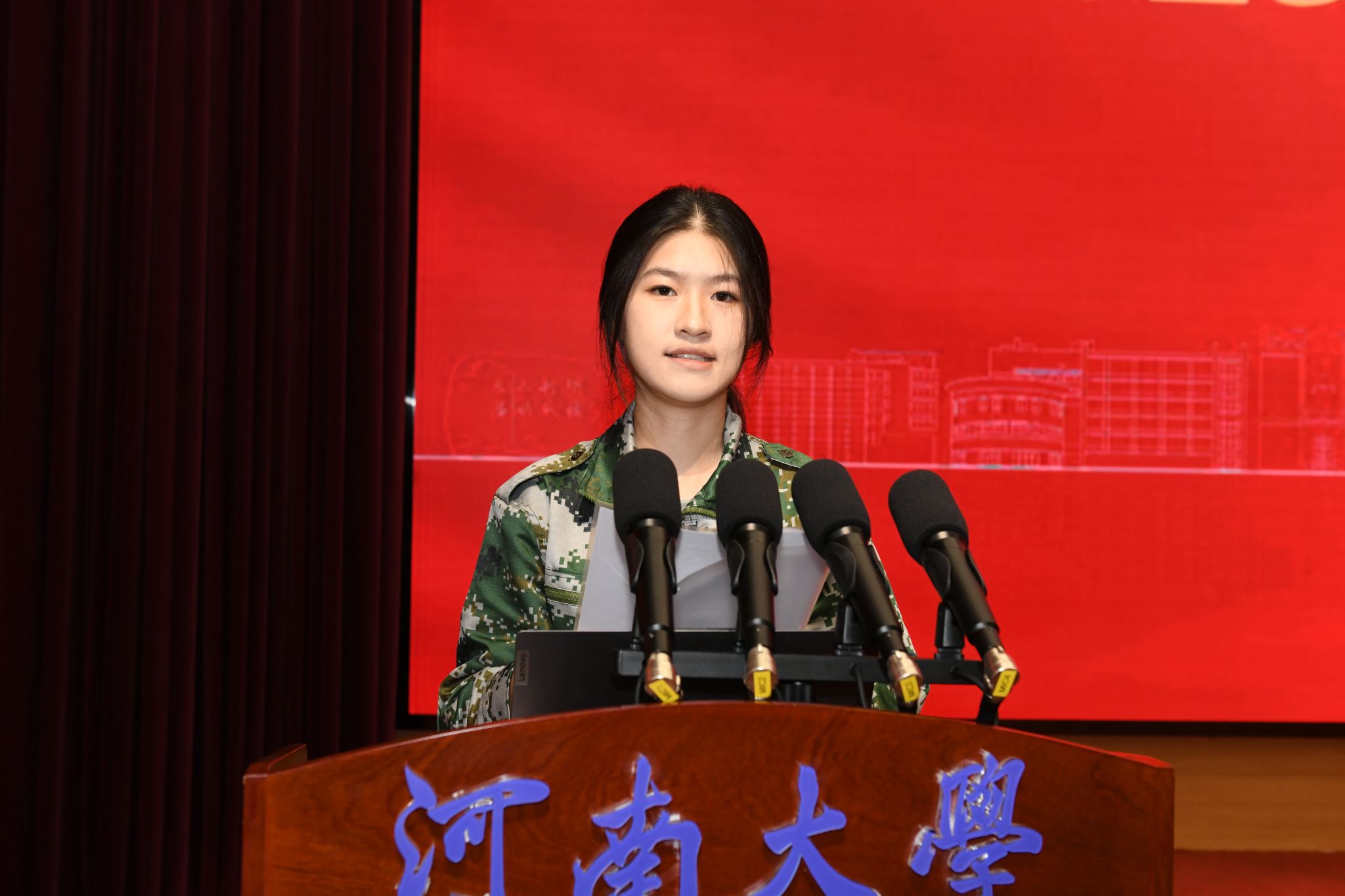 在校生代表、2024级物理学专业研究生司鹏丽分享感悟,叮嘱新生保持开放包容心态,在协作中收获友谊,在校园活动中丰富成长体验。