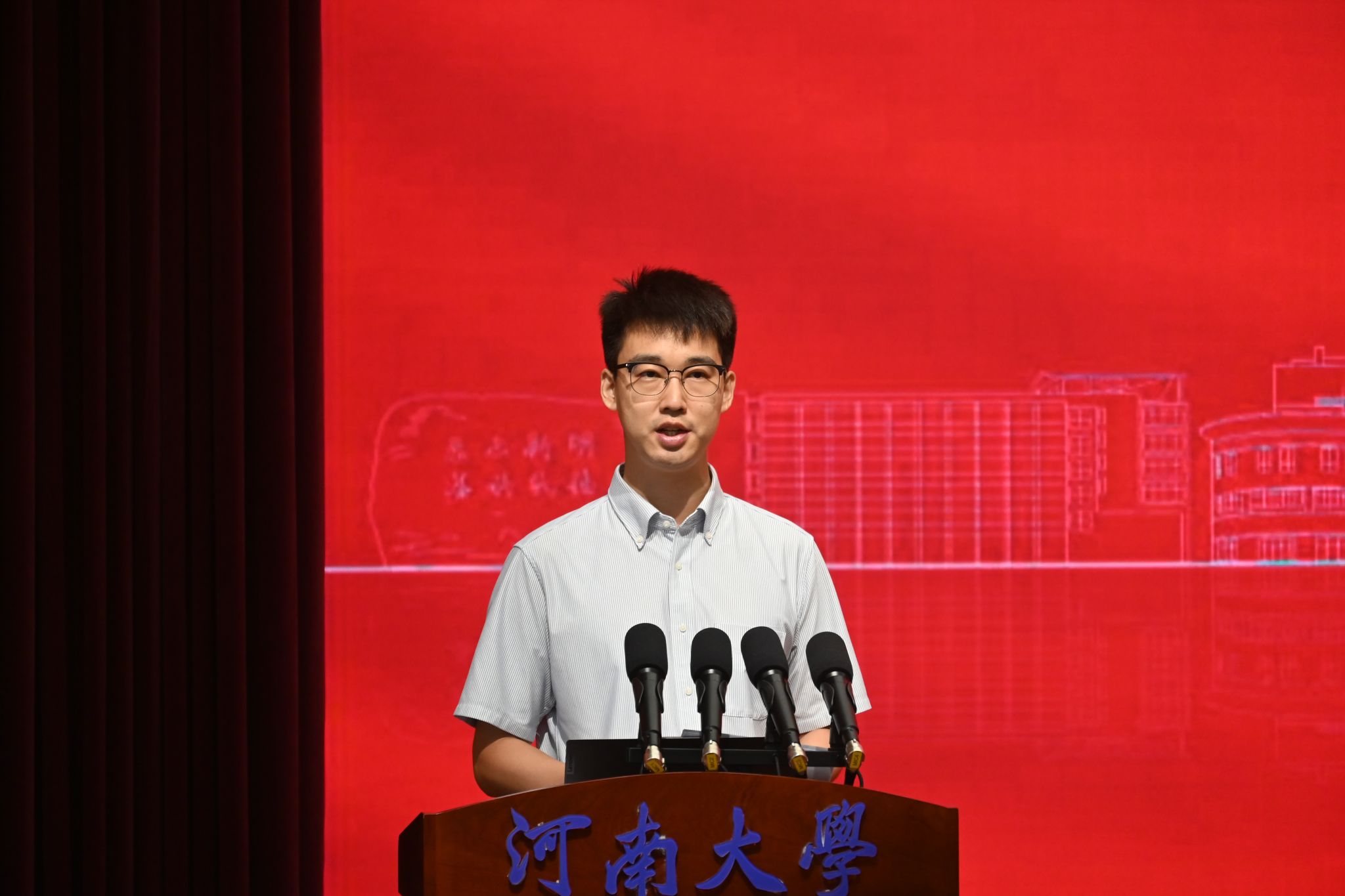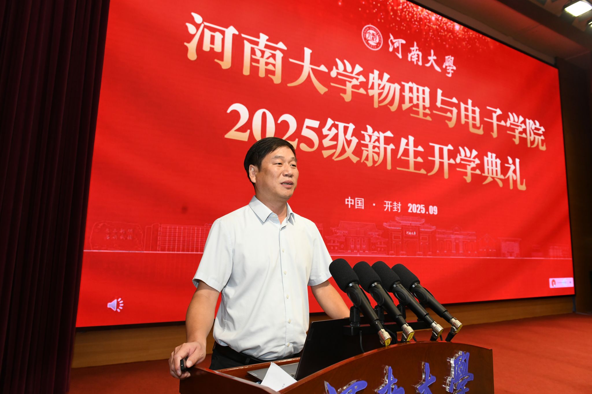 执行院长李国强代表学院向2025级新生致以诚挚欢迎。他简要介绍了学院的基本情况,并对新生提出希望:一是永葆求知之心,夯实学业根基。转变角色,适应新的学习节奏,广泛涉猎知识,培养科学精神与批判性思维,积累专业基础与学术本领。二是勇立创新之志,探索未知领域。要敢于质疑、积极参与科研,培养跨学科思维,研究生更要瞄准科技前沿求突破。三是锤炼坚韧品格,乐观面对挑战。继承和发扬河大人百折不挠、自强不息的精神传统,以积极态度应对求学路上的困难,培养积极乐观的人生态度和坚韧不拔的意志品格,传承河大精神。四是胸怀家国之责,矢志科技报国,要将个人理想融入国家发展,以所学服务社会、贡献国家,成长为担当民族复兴大任的时代新人。