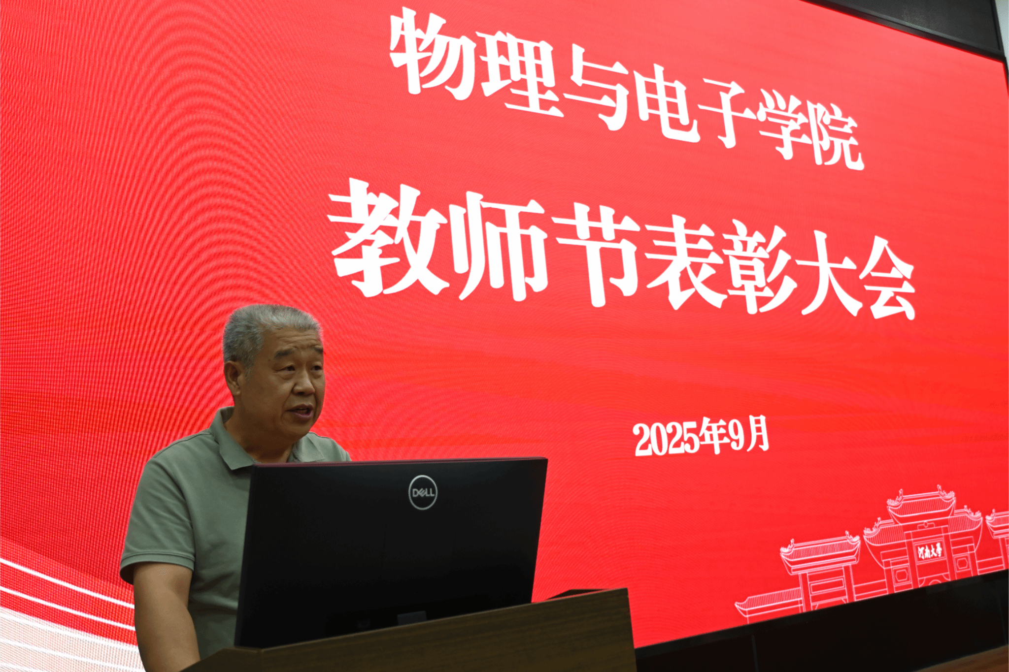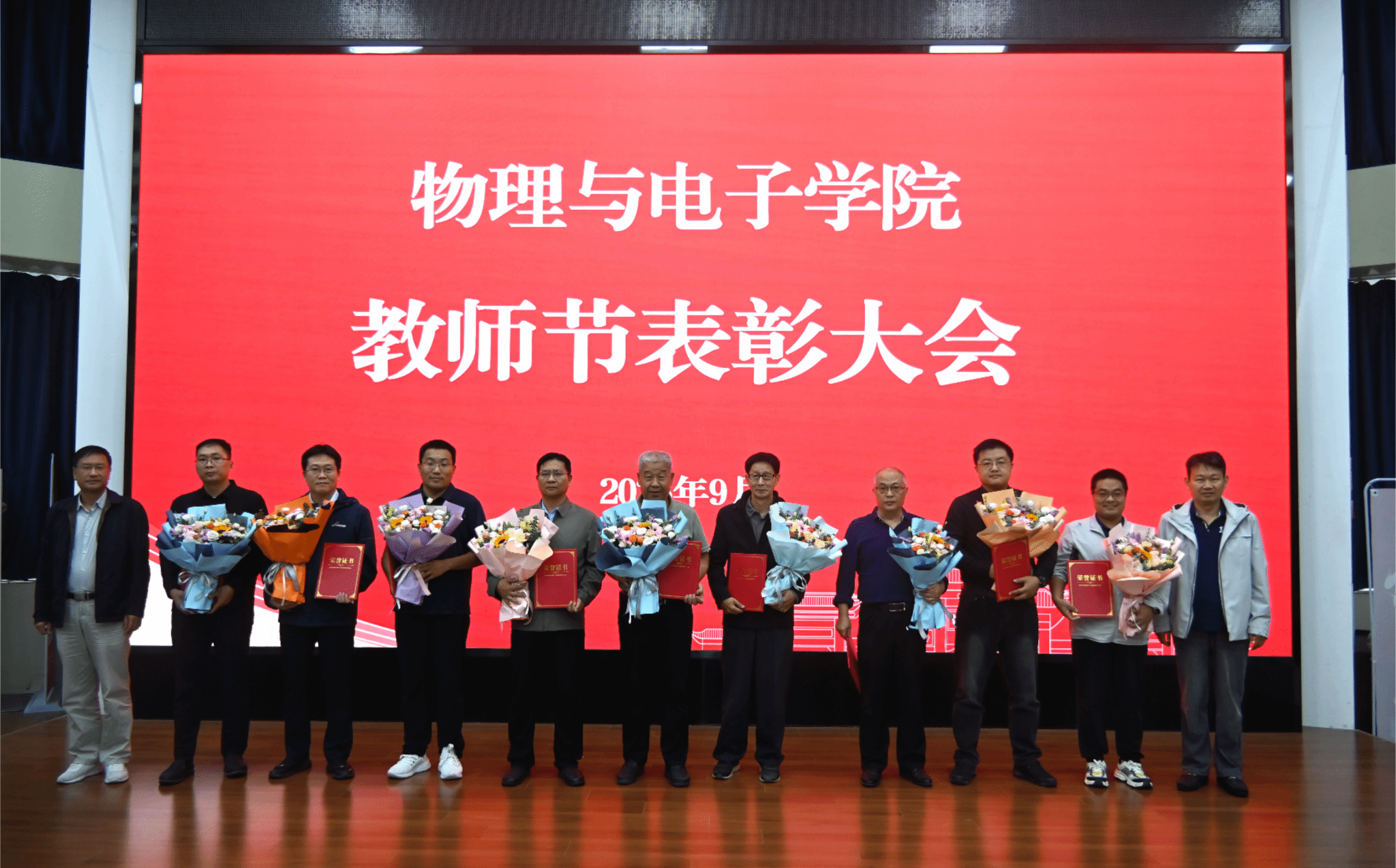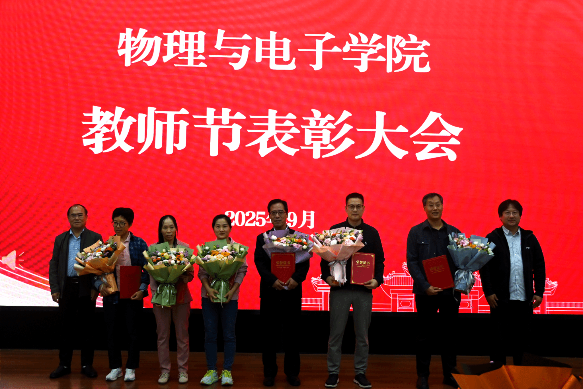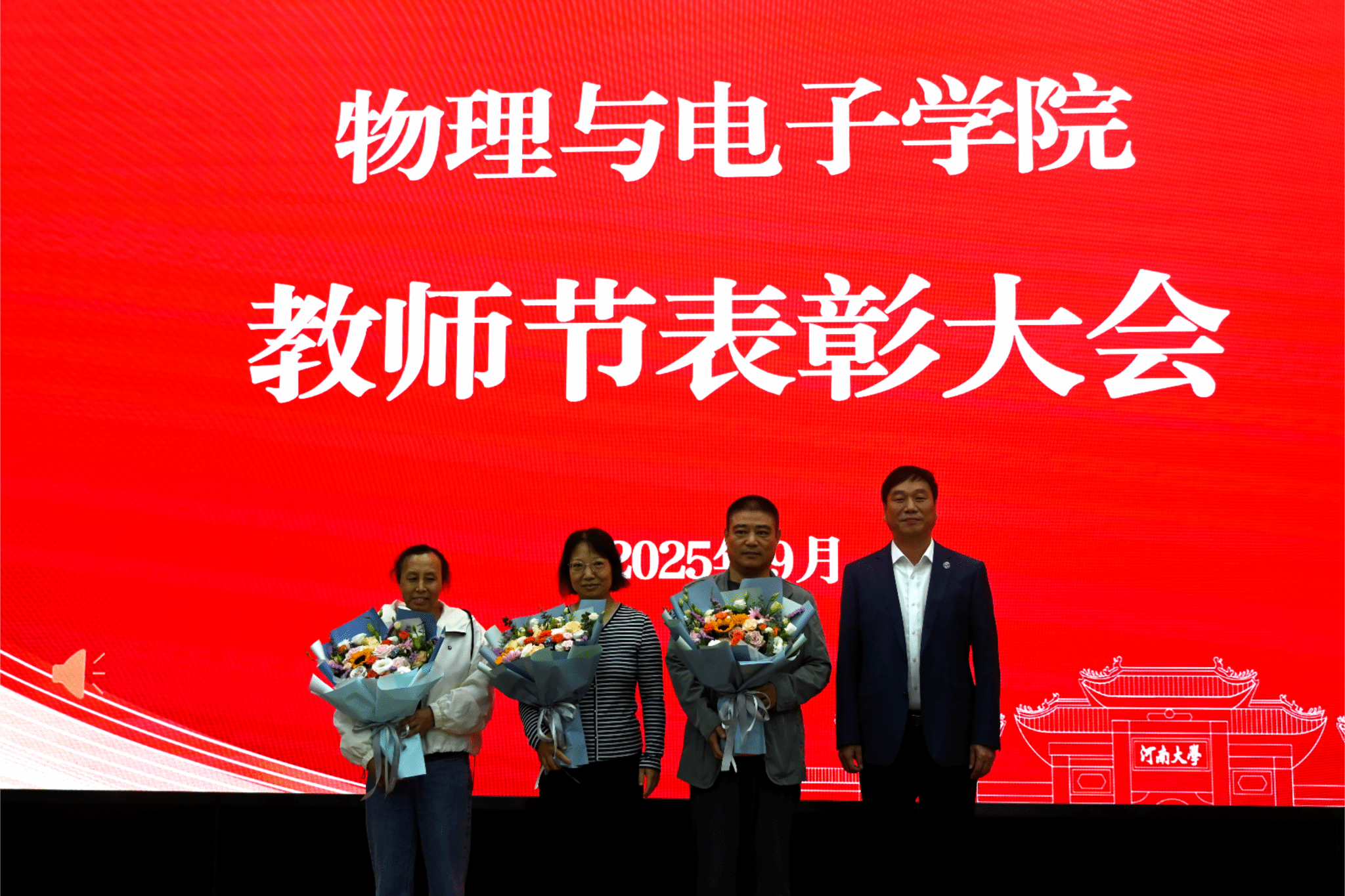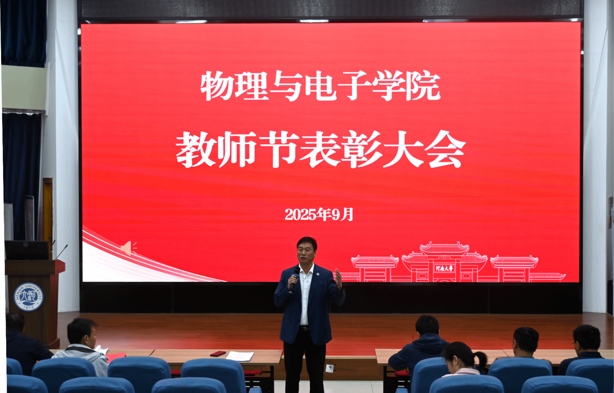 在金明校区锥形报告厅召开2025年教师节表彰大会,学院全体教职员工参会。会议由学院党委书记张慧主持。