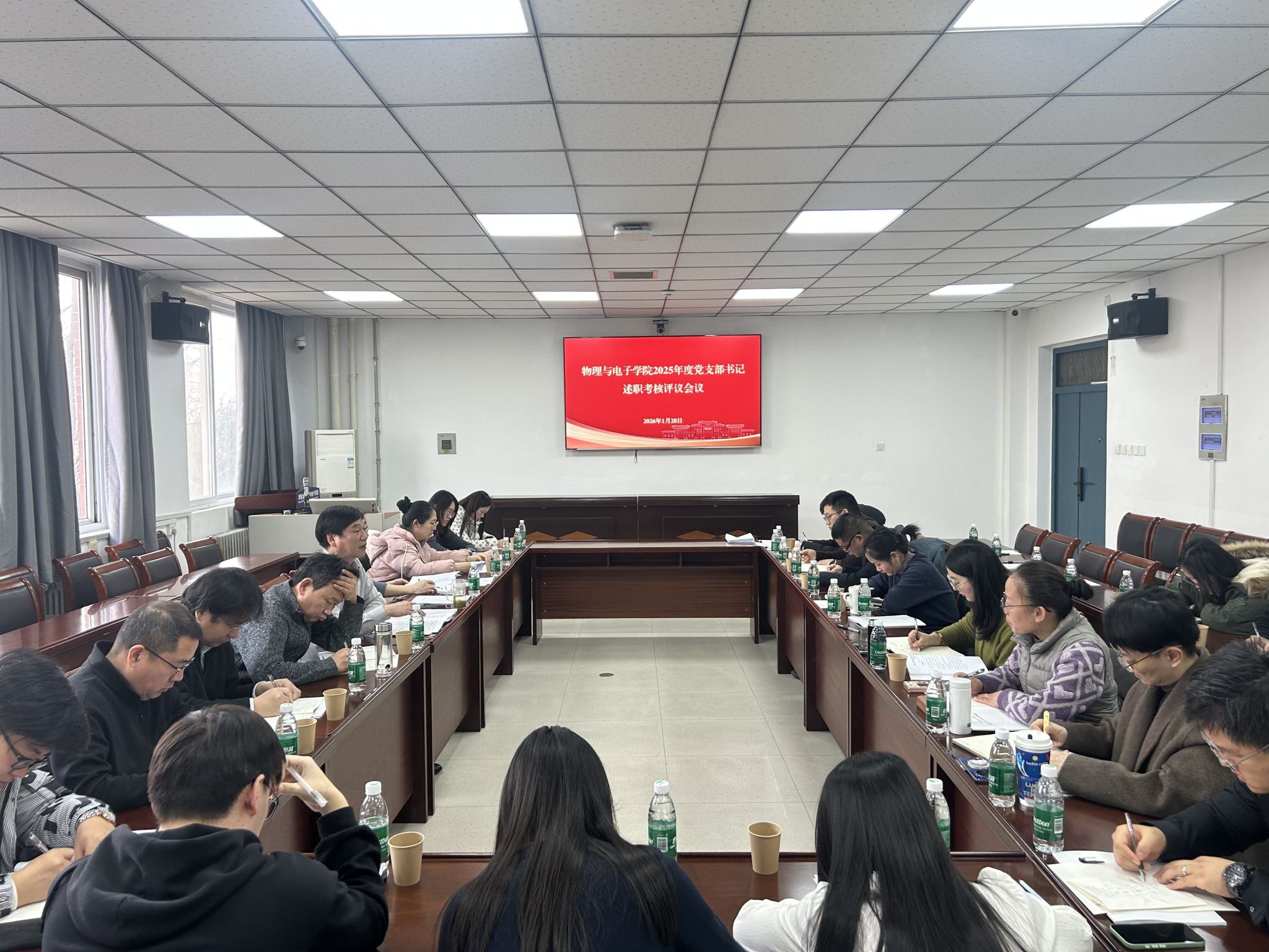在A313会议室召开2025年度党支部书记述职评议会。学院党委委员、班子成员及各党支部书记参加会议。会议由学院党委副书记刘寒冰主持。
