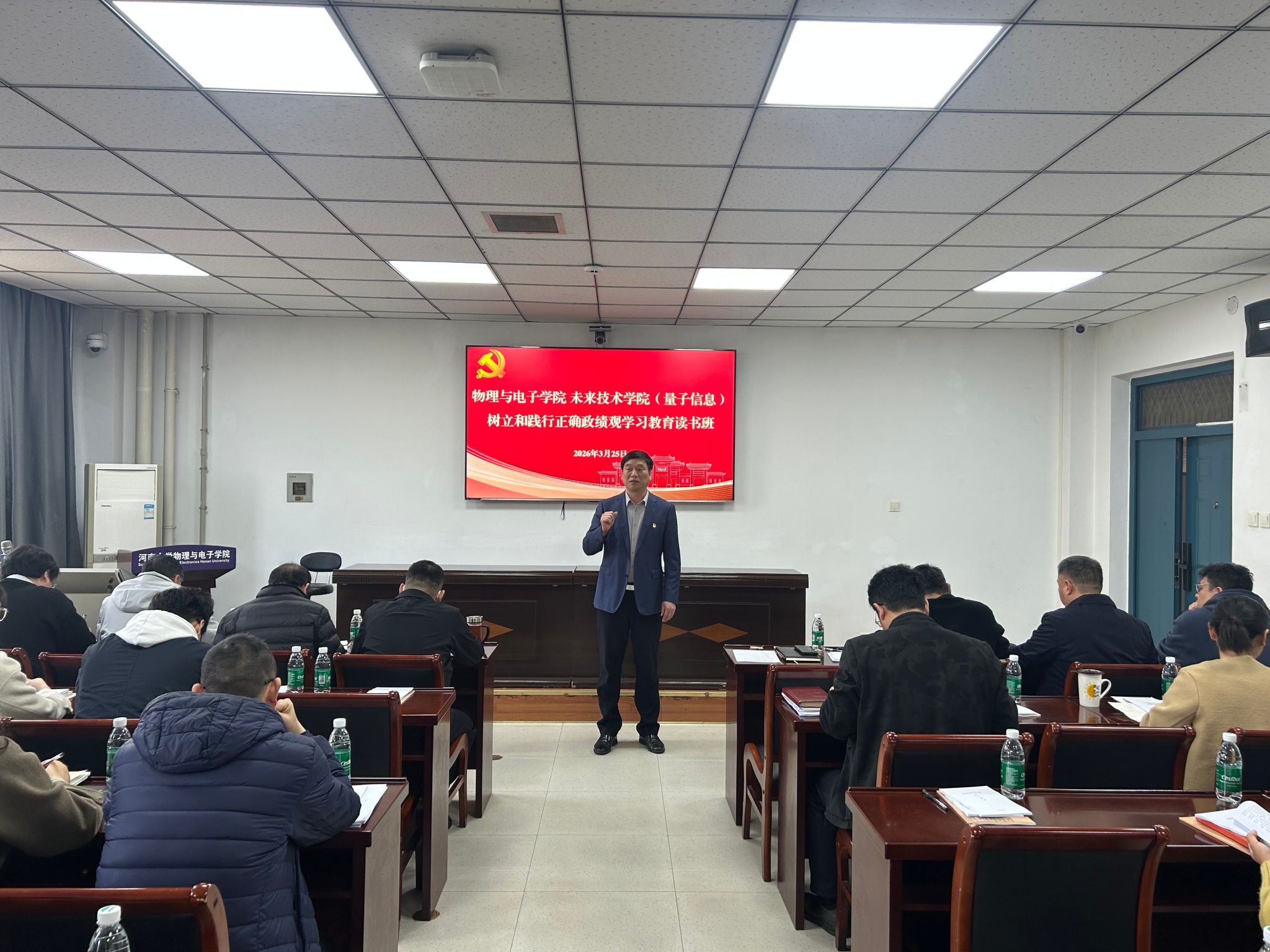 、未来技术学院(量子信息)采取领读领学、专题党课、集中自学和交流研讨等相结合的方式,联合举办树立和践行正确政绩观学习教育读书班。学院党委委员、班子成员、组织员、党支部书记、系室主任及党员代表参加。学院党委书记张慧主持并作专题党课辅导。