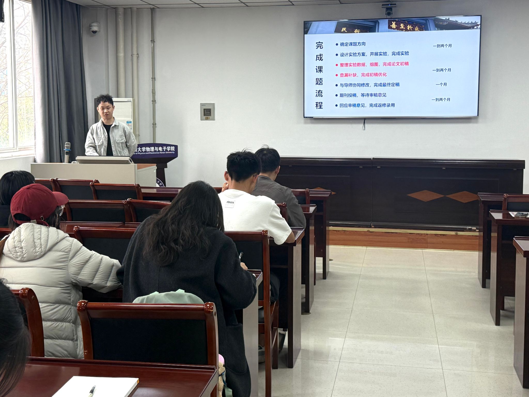 为搭建研究生学术交流平台,传承科研与学习经验,引导广大研究生高效开展科研工作和合理规划学术生涯,4月2日,学院研究生会在A313会议室举办“格物穷理共进,学术之路同行”主题学术分享交流会。活动邀请获得2025年国家奖学金的博士研究生李明星、硕士研究生刘梦冰和刘光延为大家分享科研与写作经验,学院团委书记周焕、研究生辅导员王翠苹出席会议并与同学们进行交流。