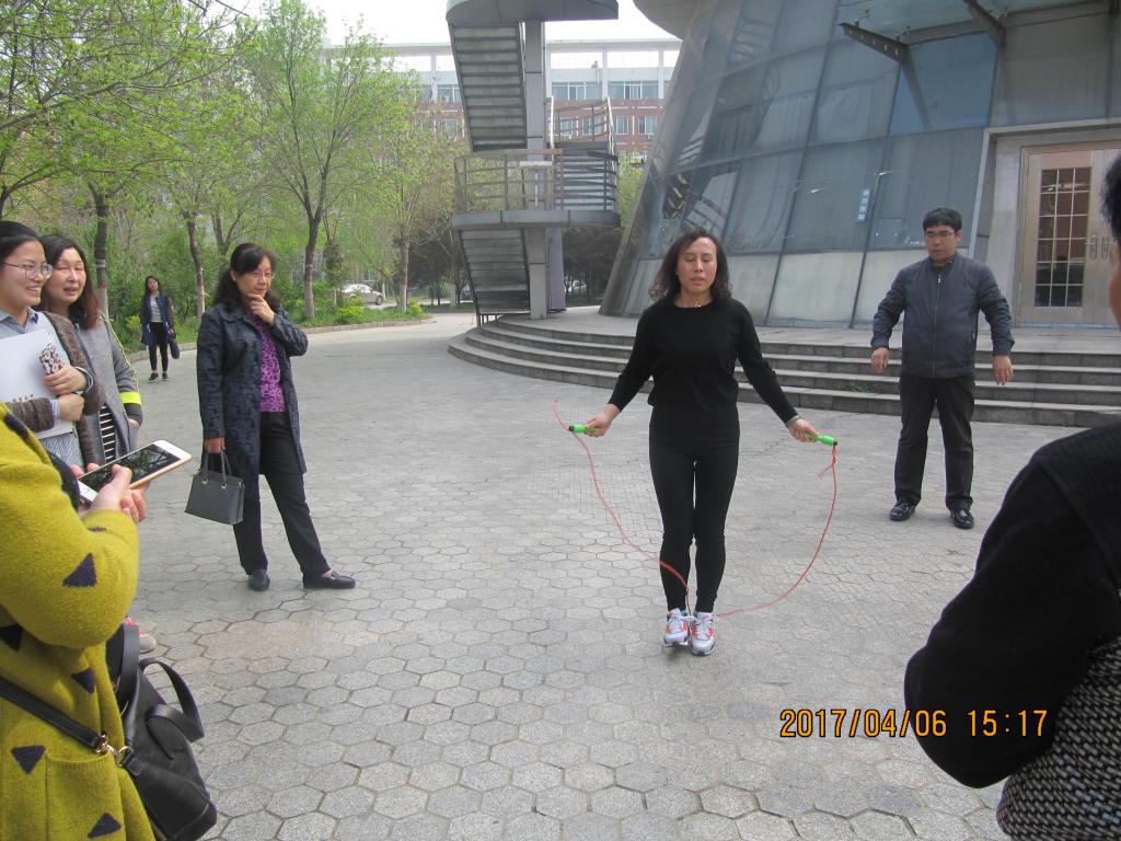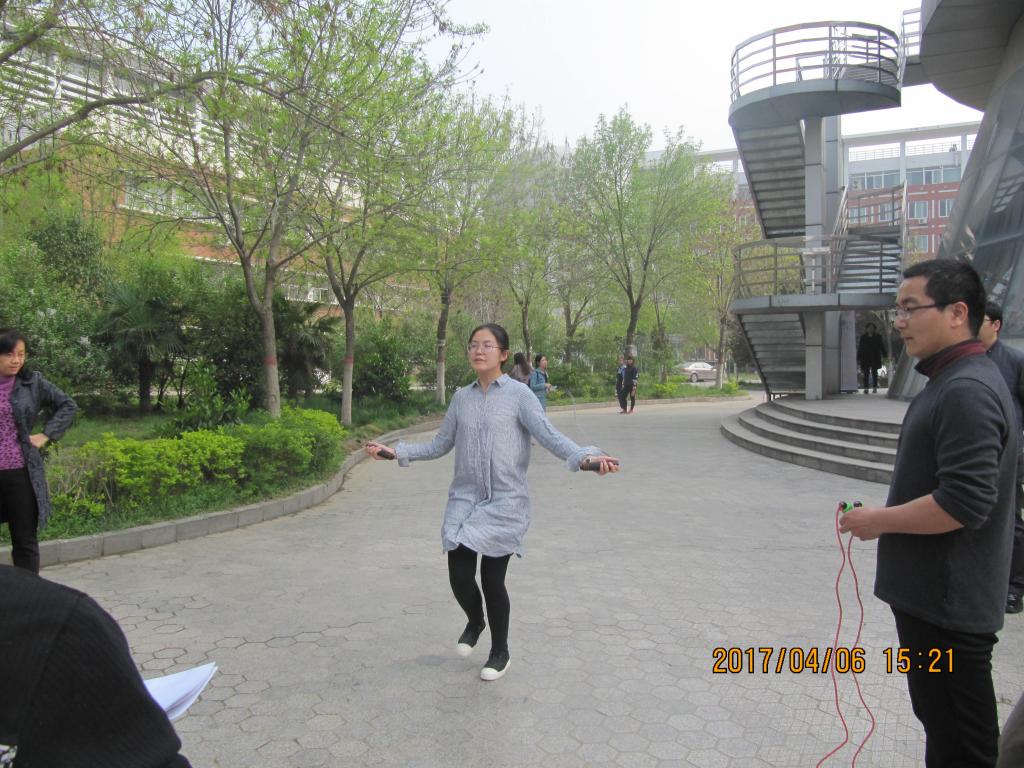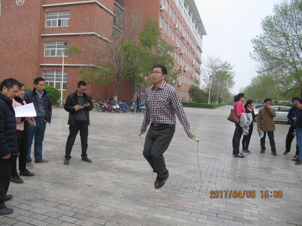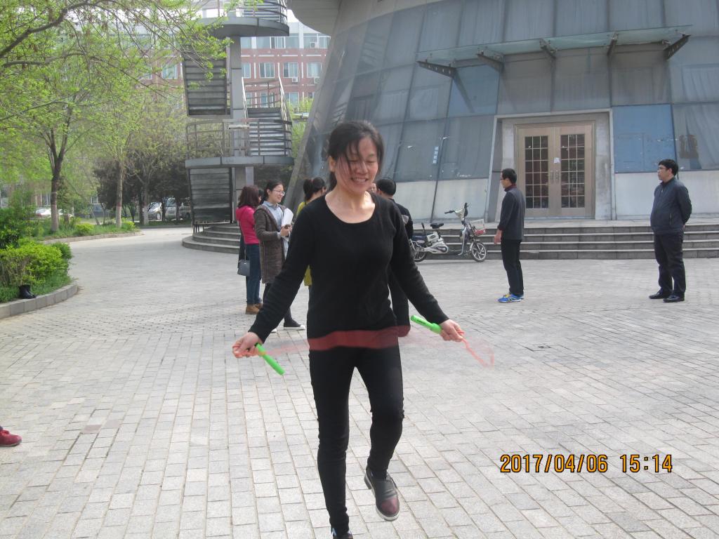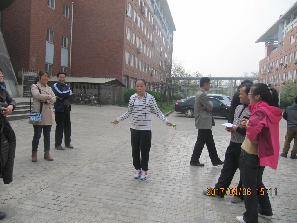 工会于2017年4月6日下午成功举办了一场主题为“团结一心,分享快乐”的教职工跳绳比赛。