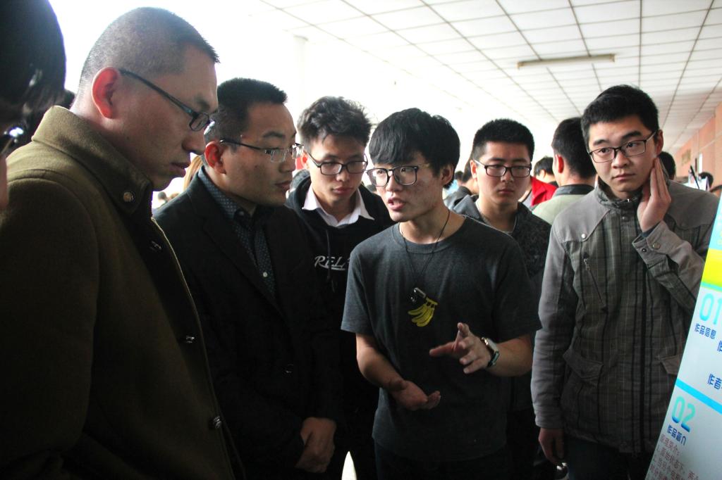 本次校赛决赛由评委现场问辩和参赛者正式答辩两部分组成。参赛团队在商学院一楼展厅展出了自己的作品,热情地向前来观摩的老师和同学讲解了自己的作品,认真回答了评委提出的各种问题。随后,参赛团队派出团队代表进行了正式答辩,就评委提出的各种问题进行了进一步的回答。