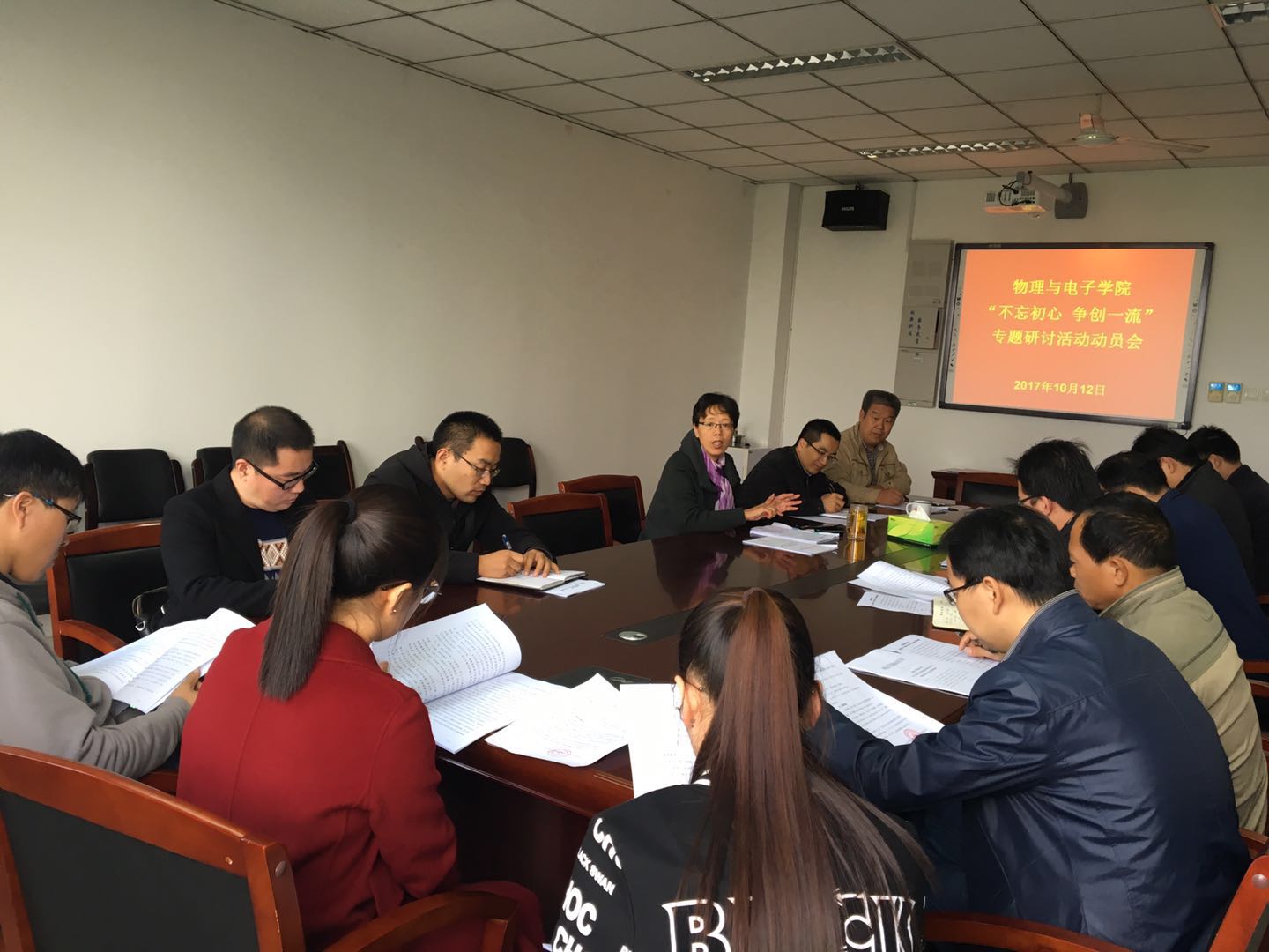 开展“不忘初心 争创一流”专题学习研讨活动方案》进行了认真解读。他要求,各支部、系室要高度重视,精心组织,围绕建设一流大学的奋斗目标,紧密结合本部门师生实际,采取多种形式开展专题研讨活动,确保活动顺利开展。