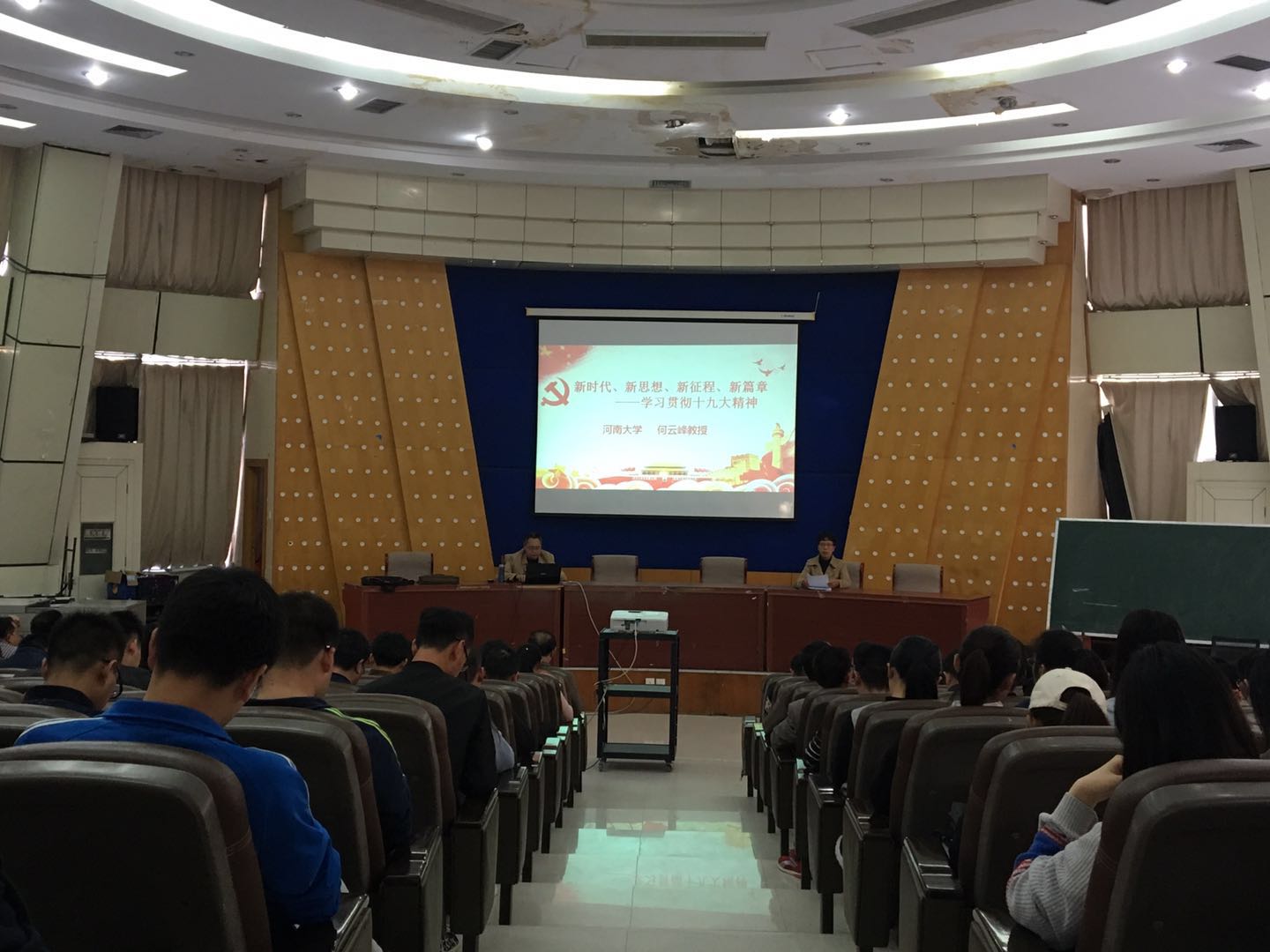 11月2日下午,为深入学习宣传贯彻党的十九大精神,切实把全院广大师生员工的思想和行动统一到党的十九大精神上来,院党委在金明校区锥型报告厅举行了以“学习贯彻十九大”为主题的学习报告会。会议特别邀请了麻豆色情片