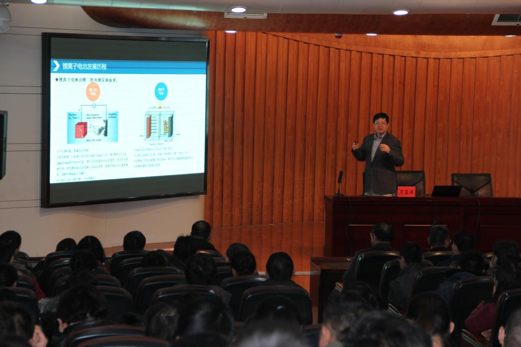 表示热烈欢迎。在随后的讲座中,吴孟涛以“锂离子电池材料在新兴产业中的发展与应用”为题,就锂二次电池层状正极材料(钴酸锂、镍钴锰三元材料等)、尖晶石型正极材料(锰酸锂等)和橄榄石型正极材料(磷酸铁锂等)的发展历史、各自的优缺点、改性方法等进行了深入浅出的分析,指出了未来几年在储能电池、新能源动力电池方面锂电池材料的发展方向和趋势,并对未来具有更高能量密度的锂硫电池、锂空气电池进行了展望。此次报告加深了大家对锂离子电池正极材料的相关问题的理解,认识到电池材料在新能源发展中的重要作用,并对吴教授在该领域的科研成果及其在产业化中的突出贡献深表敬佩。会后与会师生踊跃提问,就感兴趣的问题与吴教授进行了讨论和交流。