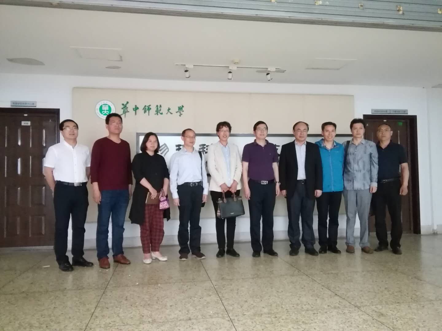 党政领导,对华中师范大学物理科学与技术学院的热情接待和诚恳交流表示感谢。双方还就教授与学生面对面、科研创新训练、研究生招生等问题进行了深入交流。随后,实地参观了他们的教工党员之家、党员事务中心,以及教授面对面工作室等。双方一致约定,要以加强“双一流”建设为契机,加强交流互动,相互借鉴学习,携手共谋发展。
