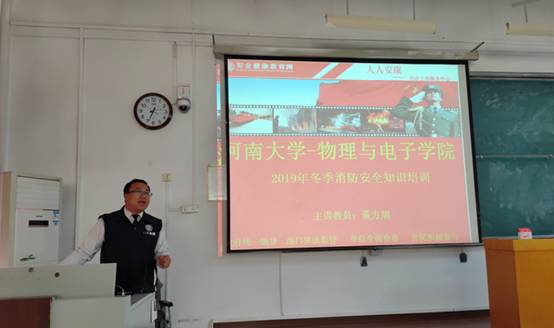 “2019年冬季消防安全知识培训”在金明综合楼2201教室召开。本次知识培训由河南省消防协会消防宣传与服务中心教员主任董方旭主讲,学院全体教师和部分学生代表参与了本次培训。