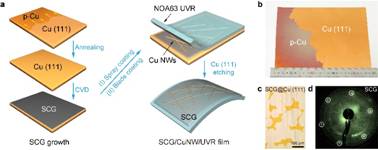 图1 单晶石墨烯/铜纳米线柔性透明电极的设计与制备