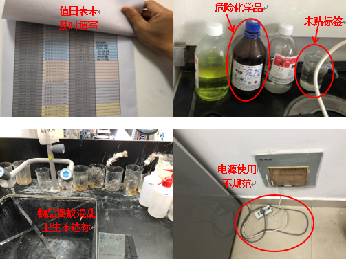 检查人员重点检查了各课题组的环境卫生、水电安全、危化品存储、废液处理、师生人身安全防护、消防设施及通道是否符合标准等。前期通过签订安全责任书,新能源材料与器件实验室将安全责任已压实到每一个课题组,实验室的整体环境和安全状况都有了较大的改善。目前实验室水电气的使用及管理日益规范,化学品有序存放,危化品保存严格执行双人双锁制度,消防疏散通道畅通,各项消防设施完备。但仍发现有部分房间还存在物品摆放混乱、样品标签不清晰、卫生不达标、电线杂乱、废液未及时处理等不规范情况,自查人员对检查过程中发现的安全隐患现场提出了整改意见,明确了整改责任人和整改期限。