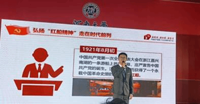 刘慧平同学富有激情地讲述了“一二·九”青年爱国运动爆发的过程,呼吁青年大学生发扬勇于担当、敢于奋斗的精神,以实现中华民族伟大复兴为己任,在新的长征路上扬帆起航。李博文同学深度挖掘红船精神背后的动人故事,呼吁同学们弘扬革命精神,继承先辈遗志,担当起时代重任。