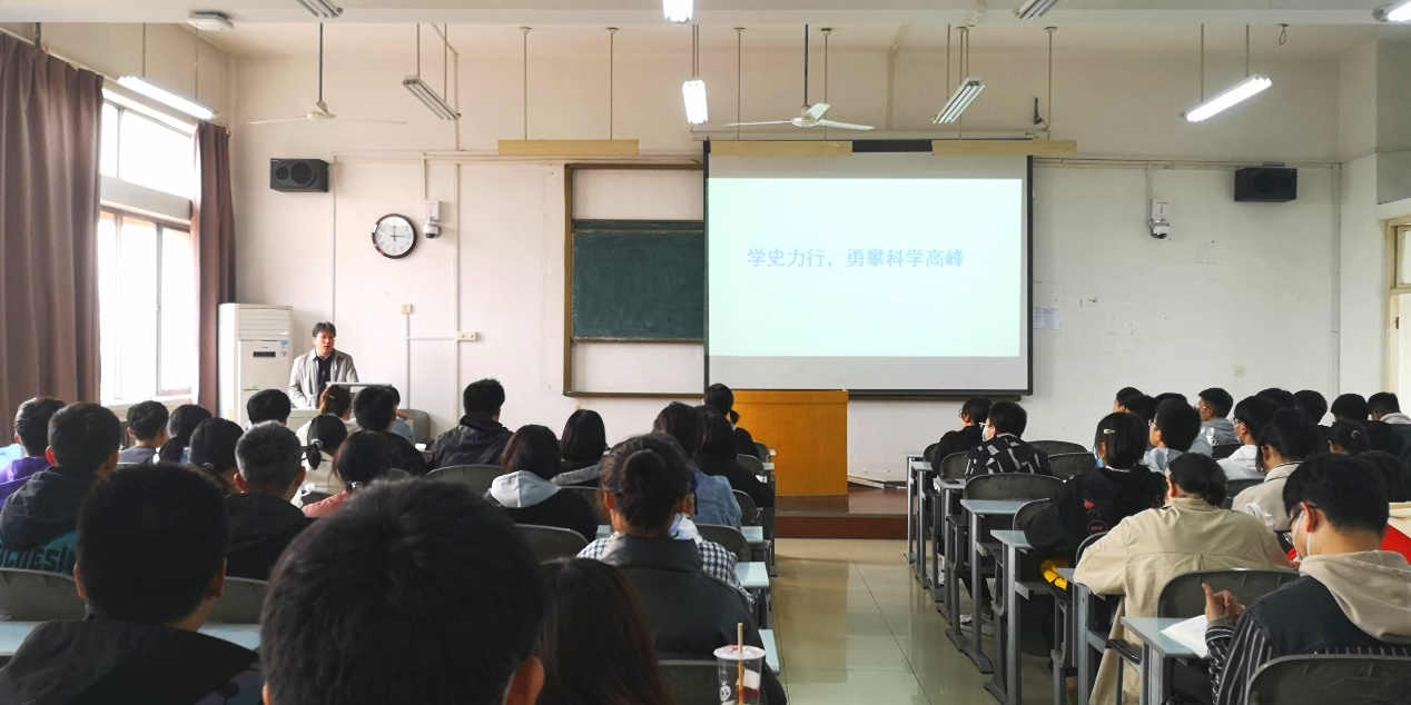 阚云超与同学们一起回顾了党的百年奋斗历程,从开天辟地、改天换地、翻天覆地、惊天动地、宝贵经验等五个方面,对中国共产党百年辉煌历程进行了详细解读。通过一张张历史照片、一页页革命文献,同学们充分认识到了伟大建党精神是中国共产党的精神之源,也是中国共产党永葆青春的力量所在。他激励教育大学生要了解党的伟大成就、传承优良传统、学习成果经验、汲取历史教训,青年的奋斗只有与国家和民族的需要有机结合,才能创造出更大的功业,焕发出更绚丽的光彩。最后,他从历史性和时代性出发,鼓励同学们抓住时代机遇,清晰把握青年健康发展正确方向,坚定信心,立志圆梦:做一个有远大理想的人;做一个有坚忍不拔毅力的人;做一个勇攀科学高峰、永远保持科学好奇心的人,通过长期奋斗实现自己的成才梦,托起中华民族伟大复兴的中国梦。