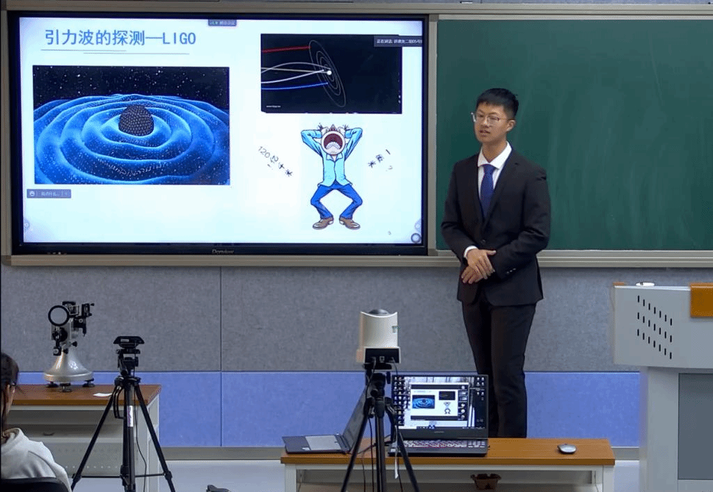 全国一等奖获得者于宏博同学在进行线上实验讲课比赛