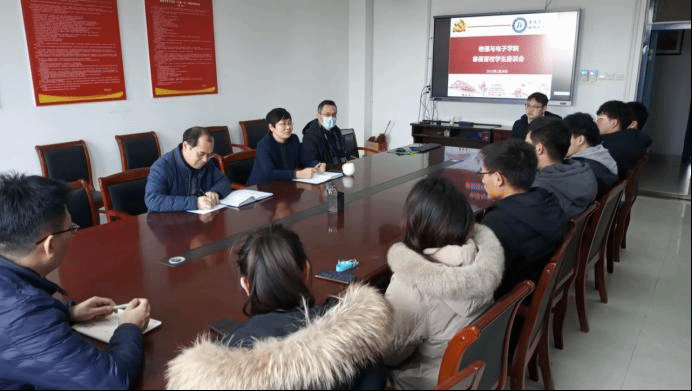在A311会议举行寒假留校学生座谈会。学院党委副书记、院长白莹,党委副书记刘寒冰,副院长李国强代表学院与留校过年学生进行了亲切交流。