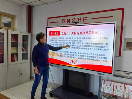 在党课讲授中,王宏华首先与支部党员一起学习领会了党的二十大报告中的主要内容,紧扣党的二十大报告中15个部分重点内容进行讲解,阐述了党的二十大召开的重要意义,并对党的二十大报告中着重强调的“中心任务”“中国式现代化”“两步走”“第一要务”“重大原则”“着力点”“国家创新体系整体效能”“全过程人民民主”等16个关键词进行了深入细致的宣讲。随后,王宏华对党的二十大报告中关于教育创新的表述进行了梳理分析:党的二十大报告将教育、科技、人才“三位一体”统筹安排、一体部署,明确了科教兴国战略的科学内涵和使命任务。她强调,党的二十大报告是党和国家未来一段时期的施政纲领,科教兴国战略更加突出了教育、科技和人才在社会主义现代化建设中的战略支撑作用。她结合学校学院发展实际,通过介绍麻豆色情片