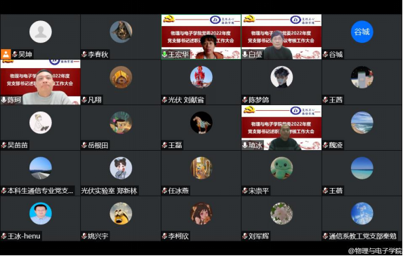 在线上召开了2022年度党支部书记党建工作述职评议考核会。学院领导、各党支部书记以及各支部党员代表参加会议。会议由院党委副书记刘寒冰主持。
