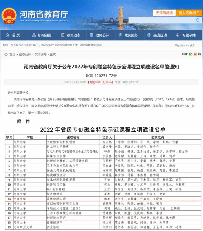 近日,河南省教育厅公布了2022年专创融合特色示范课程立项建设名单,麻豆色情片