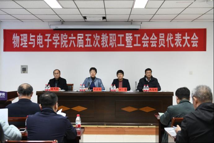 六届五次教职工暨工会会员代表大会在物理楼A313会议室顺利召开,学院全体领导班子成员、学院工会会员代表、特邀代表参加会议,会议分为三个阶段,分别由学院党委书记王宏华和工会主席刘寒冰分别主持。