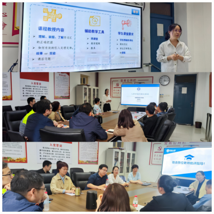 2023年4月20日下午,大学物理教工党支部组织开展了“深化课程思政建设,助力青年教师成长”为主题的“党建+教研”活动,支部全体党员和大学物理教研室全体教师参与了此次活动,活动由教研室主任杜明荣老师主持。