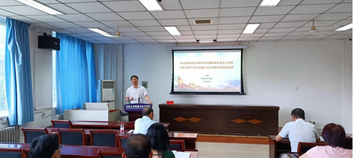 6月29日下午,学院党委书记张慧作《学习贯彻习近平新时代中国特色社会主义思想 以史为鉴严守纪法底线 同心同向共促事业发展》专题报告。他从“新民主主义革命时期党的纪律建设”“社会主义革命和建设时期党的纪律建设”“改革开放和社会主义现代化建设新时期党的纪律建设”“中国特色社会主义新时代党的纪律建设”等方面详细介绍我们党健全全面从严治党体系,全面推进党的自我净化、自我完善、自我革新、自我提高,坚守初心使命的百年历程。他要求大家要以学习贯彻习近平新时代中国特色社会主义思想主题教育为契机,深学细悟党的二十大精神,自信自强、守正创新,踔厉奋发、勇毅前行。辅导报告结束后,张慧代表学院与学院领导班子成员、各系室(中心)主任、各党支部书记签订党风廉政建设责任书。