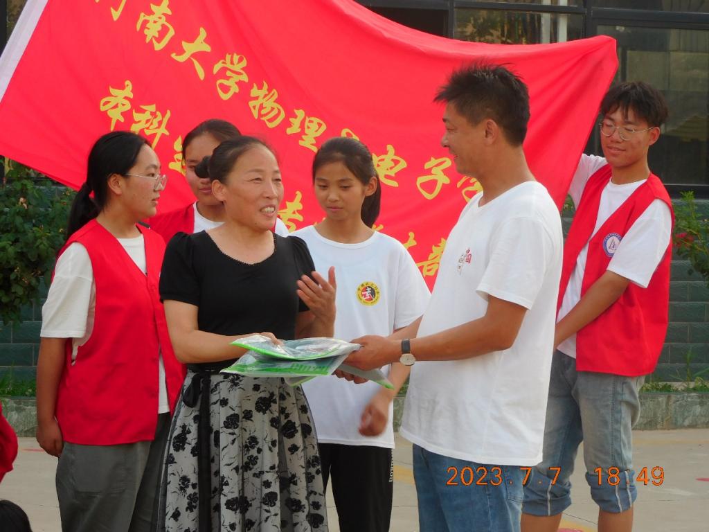 3位本科生顺利上岸陕西师范大学、上海师范大学、山西大学。支部党员冉霞、龚禔和刘广生介绍了最近一年给学生进行转专业咨询、考研指导以及就业推荐等方面的事例。支部党员阴化冰、游文武和李若平分别介绍了深入学生宿舍走访慰问情况。7月上旬至今,相继走访了金明校区研究生组团18号、华苑公寓11号和东苑23号楼等学生宿舍,给学生带去消暑的瓜果,与同学们进行了面对面的交流。张婷分享了带领学生开展暑期三下乡社会实践活动的心得,通过深入企业和农村进行安全知识宣讲、现场服务、志愿者服务等多种形式的社会实践活动,同学们开阔了视野、丰富了社会知识,坚定了积极投身社会实践,助力乡村振兴,勇敢地做时代前列的奋进者、开拓者的坚强决心。